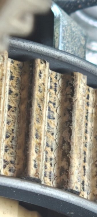 4. Gracias por las opiniones. Si, pensaba cambiarla, es mas por saber cuando la correa está o no bien ya que suelen decir que la mitad de las correas las sacan "nuevas". Yo en esta por ejemplo (teniendo 0 experiencia), viendo en los dientes que ya se ven la fibras y esas pequeñas grietas que se ven en la foto... No me da muy buena espina. A parte de eso, veo que se suele mirar color y brillo del caucho, grietas en el mismo...?