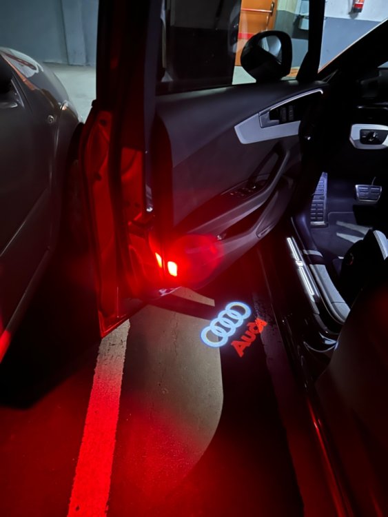 Pues aquí el primer brico que le he hecho al Audi. Luces de aviso rojas y proyector Audi (creo que voy a pedir unos nuevos sin las letras de Audi, solo los aros). Me costó un poco pasar la guía de electricista en las puertas traseras ya que el espacio es mucho más justo que las delanteras, además de que el cable del conector es muy corto, pero todo ha sido plug & play. -