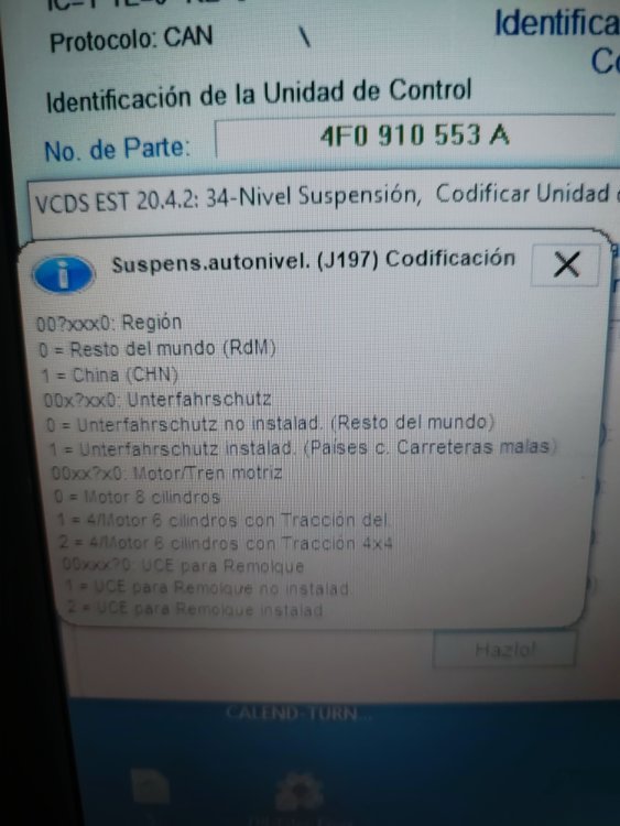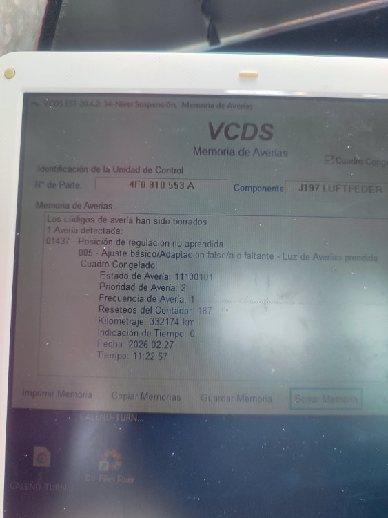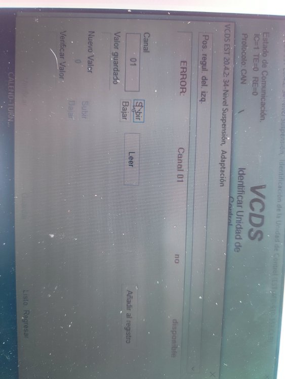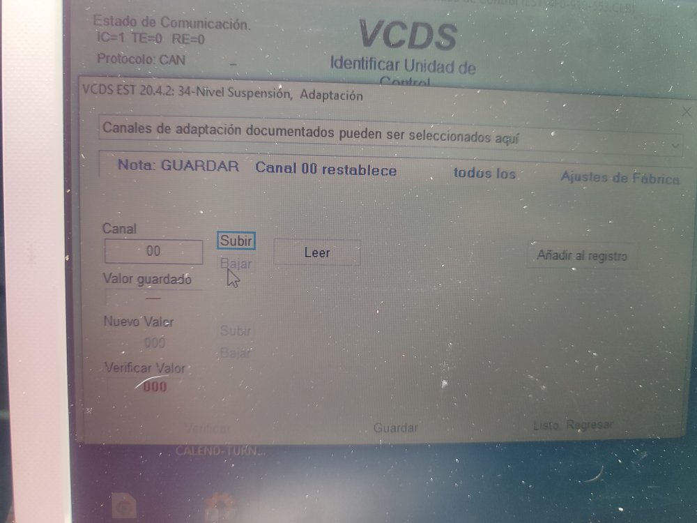 Hola, pues como pone en el título la he liado. Resulta que me daba fallo el sensor delantero derecho. Compré uno en Amazon lo puse y me daba todo el rato fallo. Coloque otra vez el viejo y quise hacer una calibración. Me dió fallo y después de esto no tenía manera de ajustarla. Total que en la calibración vi que en el canal 0 pone restablecer valores de fábrica y le di. Cagada totalllll, no le deissss!!!. Pues ahora resulta que cuando le das a calibrar empiezas en el canal 1 se pone a leer y aparece error canal inexistente. Cuando entras en el 34 suspensión neumática, das a fallos y pone valores suspensión no aprendidos. Tenéis alguna idea de lo que puedo hacer?. La primera foto es donde le di restablecer valores de fábrica. - Hoy