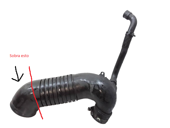 Antes de cortar nada si es el tubo donde se encuentra encima del mismo el conector más bien me decantaría por buscar el manguito/tubo que le sigue hacia la derecha, que tampoco sé si se trata del propio tubo en sí. Caso de serlo o no buscaría alguno similar para poder trabajar con él, por ejemplo en páginas como esta. https://www.gt2i.es/es/343/manguitos-de-silicona-universales?srsltid=AfmBOorHFlgdfJEurMkU_MlLduC0q95VDH4EImcDFstLvSM3yqgE8TML
