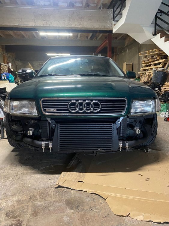 2. Buenas noches a todos, me presento despues de haber sido un usuario sin cuenta que llevaba mucho tiempo leyendo el foro. Soy fumigador98. Hace unos meses adquirí un A4 B5 1.8T quattro AEB del 97 totalmente de serie, con varios dueños, repintado varias veces, pero con motor sano, cuidado y aparentemente sin accidentes. Este coche lo compré con la mentalidad de hacer un coche de diario cómodo capaz de ir a circuito. Desde que lo he comprado le he hecho las siguientes modificaciones: - Filtro k&n - downpipe 3' - Silencioso trasero deportivo 2,5' - Manguitos refrigeración reforzados - Intercooler frontal - Stage 2 200cv - Suspensiones roscadas TA Technix con muelles eibach (ya las llevaba) - Llantas 17' multiradio s-line - Semisliks nankang ns2r 235/45-17 - Barra de torretas delantera y trasera - Asientos Sport Piloto y copolito Y ahora lo siguiente és el tema frenos.... Porque són terribles, tengo que abrir hilo sobre esto, aun despues de haber leido todo hay cosas que no me quedan claras. Estoy debatiendo entre pasarlo a 312mm o 320mm. Y latiguillos por supuesto. Planes de futuro: - Turbo hibrido, forjar motor, 400cv Un saludo!