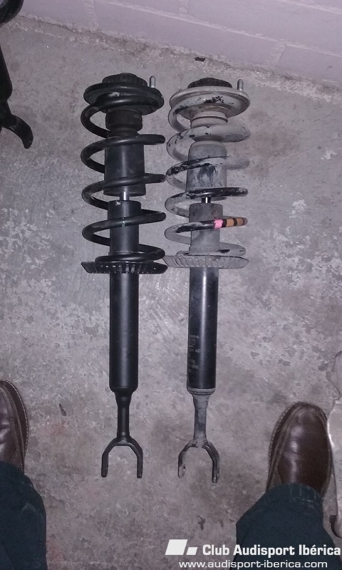 16. No habia visto estos mensajes.... A ver si yo ya tenia mas baja la parte de delante pero los amortiguadores no eran sport, teoricamente por la referencia que sale son los sustitutos de los mios de serie y el coche no iba bien tenia sensacion de ir flotando si iba por trajectos de curvas rapidas, normal si llevas muelles sport y amortiguadores que no lo son ya que no llega a absorver lo necesario, por eso me pillé los delanteros que compramos a medias que si son sport. Lo que ha pasado por lo visto que creo que ya lo he contado es que el amortiguador que llevaba si lo comparabas con el sport el plato donde apoya el muelle está como unos dos cms. mas bajo y por eso me quedaba tambien el coche mas bajo. Ahora al ponerselo todo como tendria que ir me pasa que el muelle al no ser para mi coche es algo mas duro y no baja lo que tendria que bajar, me falta hacer la prueba dinamica de curvas a ver si va mas agarrao. S2