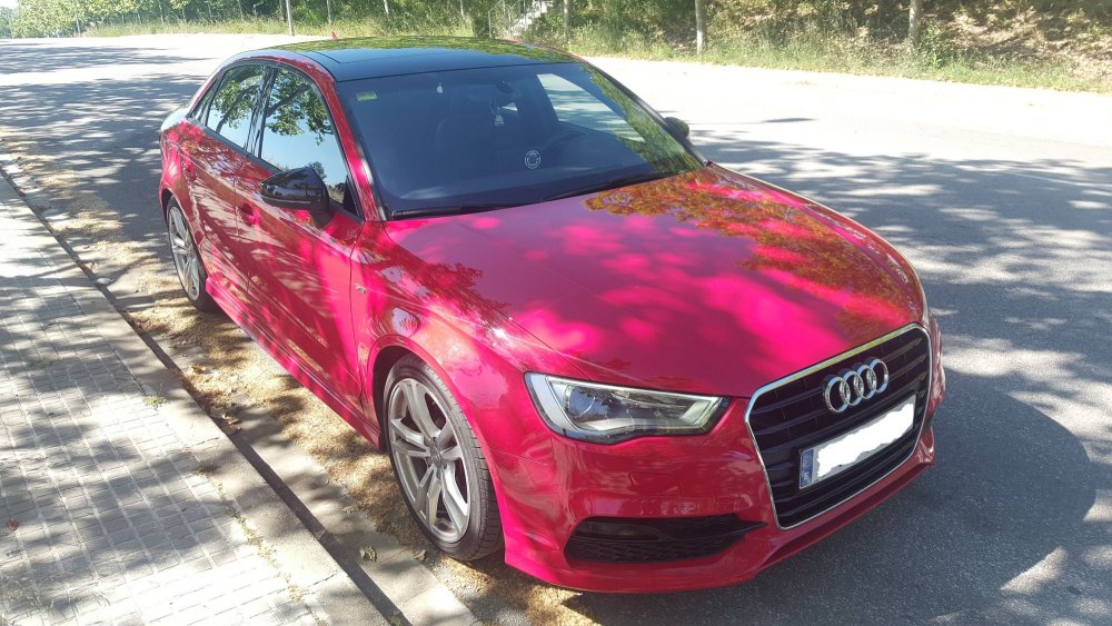 Modelo: A3 Sedán S-Line Motor: 1.6 T.D.I. 110cv km: 71.000 75.000 Año primera matriculación: 2014 Procedencia: Nacional Nº propietarios: Único Propietario Historial de mantenimiento: Si, las dos revisiones de los 30.000 y 60.000 en concesionario oficial. Tengo los recibos sellados. Equipamiento original del vehículo: - Techo panorámico - Audi Sound System - Tempomat - Paquete iluminación interior - S-Line interior y exterior - Faros Xenon - Climatizador - Asientos deportivos parcialmente en cuero - Cambio manual - Llantas 18” - Red de maletero - Audi Music interface con cable AMI - Faros antiniebla que se activan al girar el volante - Pedales de aluminio - Pre-instalación para Gps Equipamiento instalado a posteriori: - Pantalla Android (También entrego la pantalla original) - Cámara de marcha atrás (Tiene interferencias con vehículo en marcha) - Proyección de emblemas Audi en las puertas - Retrovisores en color negro brillante - Bombillas intermitentes Led - Eyectores cambiados por barrido de precisión - Pinzas de freno pintadas en color rojo - Spoiler trasero negro en la puerta del maletero - Aireadores en color rojo con bordes en aluminio - Portagafas en lado conductor Estado del vehículo: El estado es impecable interiormente. En el exterior tiene alguna mínima marca en un paso de rueda, en la puerta del maletero y en el parachoques frontal. También tiene alguna pequeña rascada en los bordes de las llantas por los bordillos, pero nada importante. Comentarios: Siempre en garaje. Se puede probar sin compromiso, llevarlo a cualquier taller para comprobar su estado. Neumáticos cambiados hace un año. El motivo de la venta es por cambiar a vehículo más grande. Precio: 17.000€ 16.000€ 15.400€ Ubicación: Barcelona
