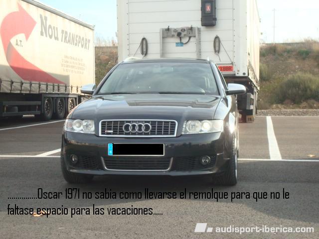 M@DM@X Publicado 13 de Diciembre del 2008 Denunciar Publicado 13 de Diciembre del 2008 (editado) .......bueno, pues esta mañana hemos estado en Lleida con GERA4 y Slam, Oscar1971, MoratA y un servidor para la colocacion de unos pedales en el B6 de Oscar, la intencion hera ke MoratA tambien se fuese con sus pedales kolocados, pero no ha podido ser, pero lo ke si ha hecho MoratA a sido colocarle unos separadores a su B6, y la kedao ke te pees. A sido un placer haber conocido a GERA4 y Slam, y espero ke nos volvamos a ver, ya sea en alguna KDD o en el PRC Barcelona. .......pues, unas fotillos del acontecimiento.... ...en nuestra primera parada para comenzar las mod´s Oscar kiso enganchar un remolke para tener algo mas de maletero para el tema de las vacaciones..........jajajaja, pero justo cuando ya estabamos fuera de los coches...llegó un señor y nos hechó muy educadamente, ya ke hera un parkin privado y nos kolamos por la feis......jajajaja Editado 13 de Diciembre del 2008 por M@DM@X