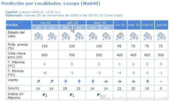 cascadeur Publicado 28 de Noviembre del 2008 Denunciar Publicado 28 de Noviembre del 2008 ¿Quedasteis en alguna hora/lugar en el PRC para los que no vamos a los karts?S2 Ayer no pude ir al PRC, espera a que Otto se conecte. Prediccion para mañana Informacion para los que vamos derechos a Lozoya: Punto de reunion la misma plaza de Sanchinarro, pero a las 12:45 para salir de alli a las 13:00 Os aviso que yo tengo puntualidad Alemana asi es que a las 13:00 saldre de alli con o sin escolta. Pero si nos va a sobrar tiempo, hasta para hacer derrapajes con los coches, sobre todo con el mio Jose acuerdate de no hacerlo al reves, el ESP siempre conectado y en nieve con cadenas desconectado.
