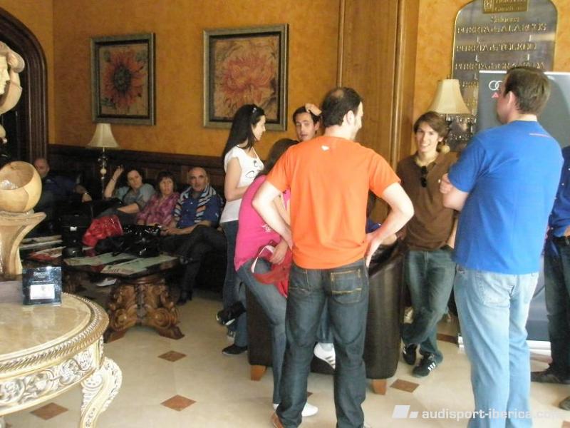 ILDEFONSO Publicado 20 de Mayo del 2009 Autor Denunciar Publicado 20 de Mayo del 2009 bueno..aqui otra zona del "punto de encuentro"... en primera plana... EL amigo JOSEMA y esa gran camisa azul.... sentaditos parte del ala gallega Responder