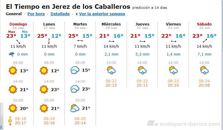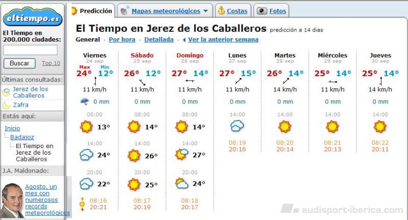 Nes37 Publicado 17 de Septiembre del 2010 Denunciar Publicado 17 de Septiembre del 2010 Bueno gladiadores, visto lo que ha caído esta noche en Cáceres a todos nos entra un escalofrío por la médula espinal, porque os tengo que recordar que EN TODAS las kedada A5 ha llovido .... en la gallega también, pero sólo un poquito :ranting2: Así que iremos actualizando las previsiones metereológicas para tal fecha. Como todavía no se puede afinar mucho os pongo las predicciones para los inicios de la gran semana extremeña, de entrada buenos.