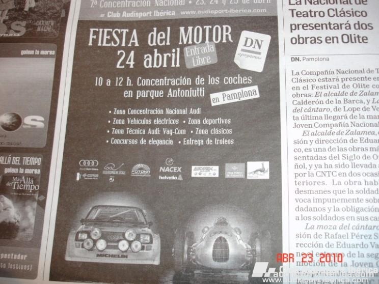 AlvaroGLR Publicado 11 de Enero del 2014 Autor Denunciar Publicado 11 de Enero del 2014 VII KDD NACIONAL. PAMPLONA. 2010. La VII concentración nacional audisport-ibérica se celebró durante los días 23-24-y 25 de abril del 2010 en Pamplona. Los actos comenzaron el mismo Viernes al mediodía con una comida para los más madrugadores, unas 20 personas venidas desde los más dispares lugares de nuestra geografía. Toda la tarde posterior fue un no parar con la llegada de foreros al Hotel Iruña Park. Por la noche la cena se realizó en un local cercano, para no coger los coches, y se terminó con una fiesta sanferminera hasta altas horas de la madrugada, donde los participantes vinieron ataviados con el traje típico blanco y se les hizo el regalo del pañuelico rojo. El Sábado era el día central y organizamos una fiesta del motor en uno de los emplazamientos mas grandes e importantes de Pamplona. La fiesta tuvo exposición de coches clásicos, concursos de elegancia, exposición de motos clásicas, vehículos todo-terrenos de la 2ª guerra mundial del club JEEP, vehículos eléctricos, zona técnica Vag Com, y un buen servicio de catering para que los invitados al evento no pasaran sed ni hambre… Después de la fiesta del motor y en caravana nos dirigimos a tierra Estella a comer en lugar idílico, con buen paisaje y buenas instalaciones como es el palacio Dos Olivos de Galdeano. A nuestra llegada hubo un aperitivo como recibimiento y acto seguido la comida donde nos juntamos alrededor de 120 personas en total. Por la tarde y tras la vuelta al hotel para reponer fuerzas, nos dirigimos en autobús a las instalaciones de PRC Esquiroz que está a las afueras de Pamplona. Allí degustamos una cena de picoteo y posterior fiesta con baile. La vuelta en autobús al Hotel fue de los momentos mas graciosos que recuerdo, porque los chistes y sucedidos no paraban de contarse y fue genial… Ya en el Hotel las despedidas, al igual que el domingo por la mañana, ya que el camino para muchos era largo… otros decidieron conocer la ciudad, picoteo, pinchos etc… Esto fue en resumen nuestra nacional en Pamplona Firmado: Txispis Responder
