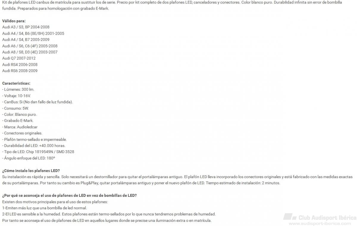 Mompeán Publicado 21 de Octubre del 2016 Autor Denunciar Publicado 21 de Octubre del 2016 echale un ojo a este hilo de peixet http://www.audisport-iberica.com/foro/topic/303819-leds-de-matricula-originales-sin-error-para-a4-b7/#entry3813608 Si el los compra originales y resistencias y eso que es como se debería haber hecho la verdad, pero mira los que compre yo: Según la página que es bastante conocida va con canceladores y todo preparado para montar y que no de problemas, entonces no se que pasa... Es que la verdad que mi hermano en un golf V los lleva de la misma página y no le da problemas Enviado desde mi iPhone utilizando Tapatalk Responder