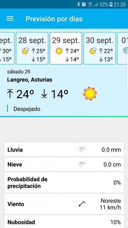 jatdt Publicado 26 de Septiembre del 2018 Denunciar Publicado 26 de Septiembre del 2018 El lunes da agua por alli pero el finde sol y buen tiempo.