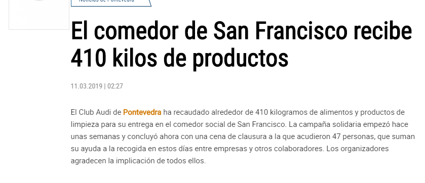susopampin Publicado 11 de Marzo del 2019 Denunciar Publicado 11 de Marzo del 2019 Noticia (aunque incompleta) en Faro de Vigo. https://www.farodevigo.es/portada-pontevedra/2019/03/11/comedor-san-francisco-recibe-410/2066405.html Responder