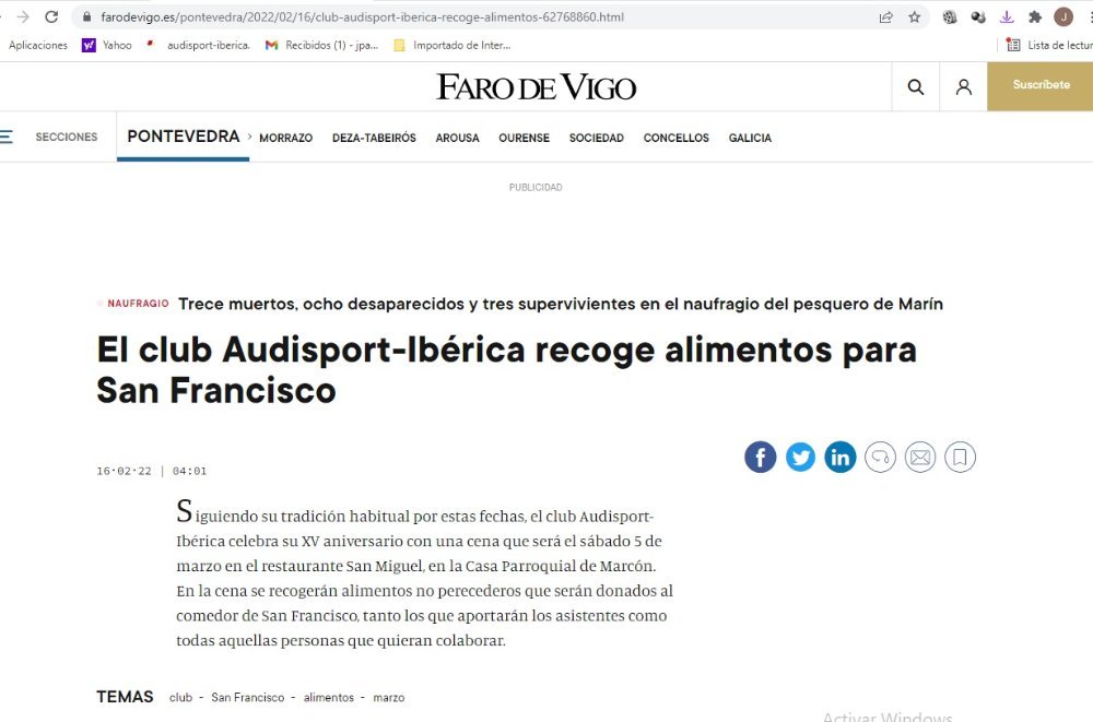 susopampin Publicado 16 de Febrero del 2022 Denunciar Publicado 16 de Febrero del 2022 Noticia en Faro de Vigo de la cena aniversario. https://www.farodevigo.es/pontevedra/2022/02/16/club-audisport-iberica-recoge-alimentos-62768860.html Responder