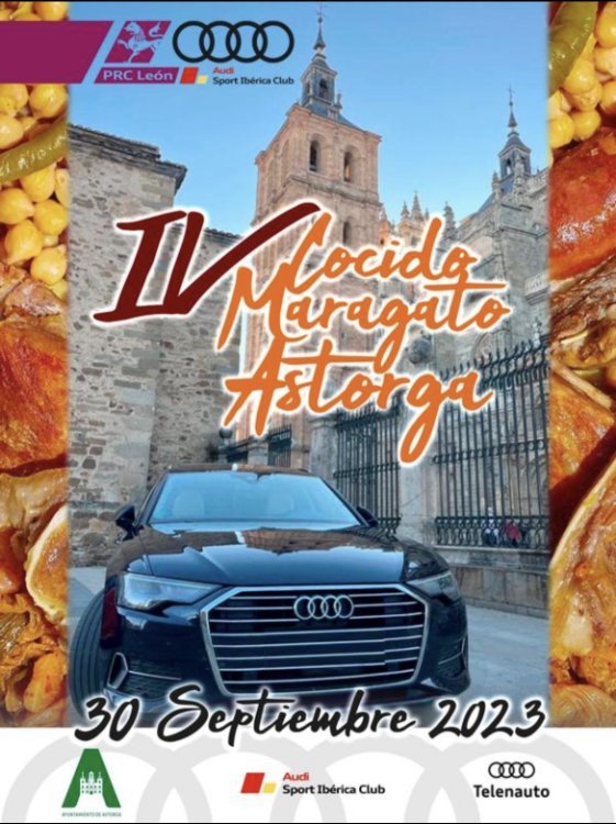 UN AÑO MAS, este PRC LEON y el CLUB AUDISPORT IBERICA, tenemos casi todo preparado para que disfrutéis del IV Cocido Maragato por tierras Maragatas, siendo nuevamente el Ayuntamiento de Astorga, el lugar elegido para la celebración, en diferencia con años anteriores, solo será de un día, el día 30 de Septiembre 2023, aprovecharemos a deleitarnos con un buen cocido maragato, disfrutar de la exposición de los vehículos acreditados e inscritos en el evento, saludar a los viej@s amig@s y a los nuev@