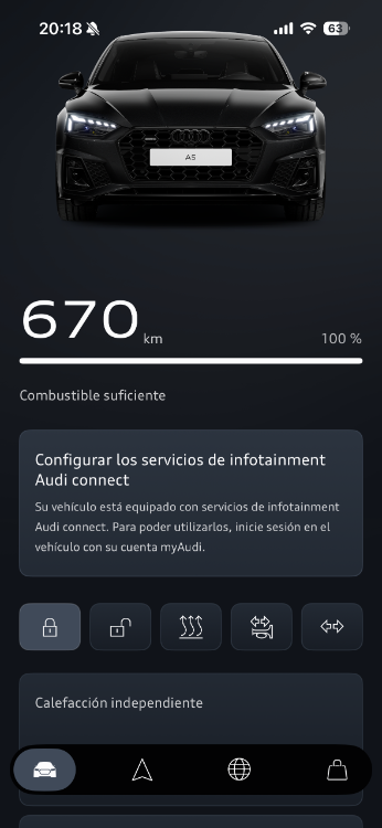 galanot Publicado hace 58 minutos Autor Denunciar Publicado hace 58 minutos (editado) Sólo añadir que tiene garantía oficial hasta agosto de 2027. Por aclarar el kilometraje del título, el coche tiene actualmente 19.253 km Paso algunos pantallazos de la app de Audi: Editado hace 55 minutos por galanot